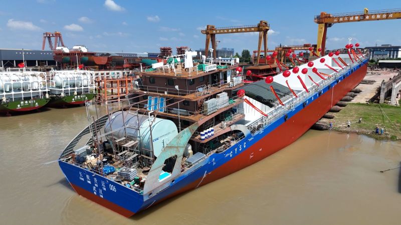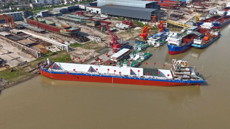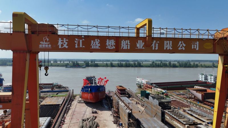 枝江融媒(记者 朱深耕 黄杰成)7月28日下午4时,由长航货运有限公司建造的川江标准绿色甲醇智能船舶“长航货运006”轮在枝江盛懋船业有限公司顺利吉水。