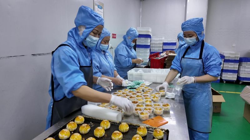 宜昌桂香园食品有限公司车间负责人杨宗斌介绍:“目前我们每天的产量大约在七吨到八吨,月饼订单比平时增加了百分之七八十。除了本地企业,还有很多外地订单,大家都在加紧生产。我们自己的门店销售也很火热,供不应求。”