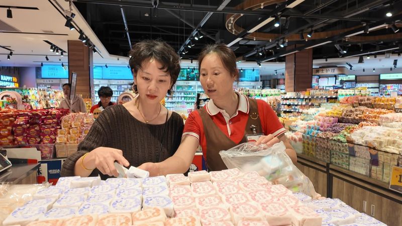 与此同时,本地零售企业也为进入“双节模式”提前做好了准备。走进北山超市商业大楼店,月饼销售区被设置在最显眼的位置,各式各样的月饼礼盒和散装月饼琳琅满目,吸引了不少消费者驻足挑选。