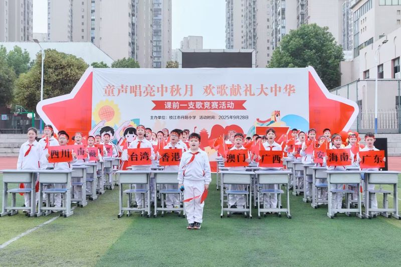 枝江融媒(记者 曹云桐 通讯员 盛霞 黄琴)双节将至,9月28日,枝江市丹阳小学校园内歌声飞扬、暖意满盈。以“童声唱亮中秋月,欢歌献礼大中华”为主题,兼具礼赞祖国76周年意蕴的“课前一支歌”比赛如期举行,全校37个班级全员参与。