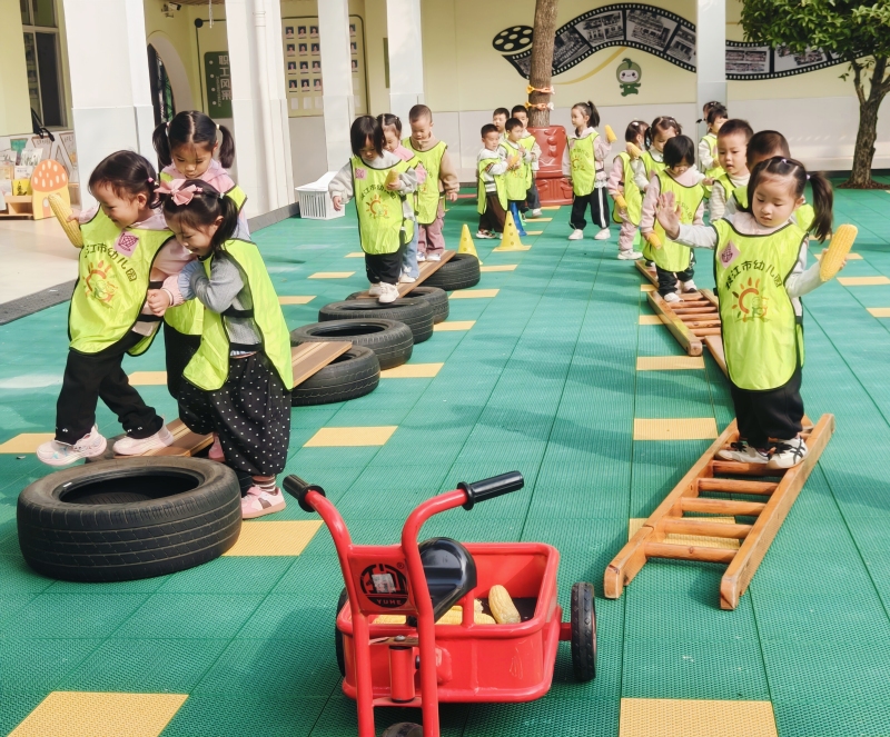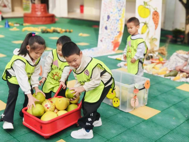 运动会以收集果实为主题,孩子们被分为柿子、南瓜、玉米、柚子四支小队。通过“平衡运粮”“钻洞摘果”“果实传递”等游戏环节,在欢乐中锻炼了平衡、钻爬等运动能力,同时加深了对秋季果实的认知。